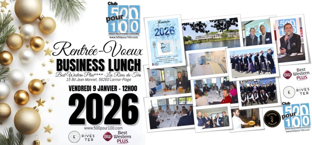 12h30 : Rétrospective 2025 du Club Réseau d’Affaires 500pour100 + le traditionnel discours des vœux des référents du Club,