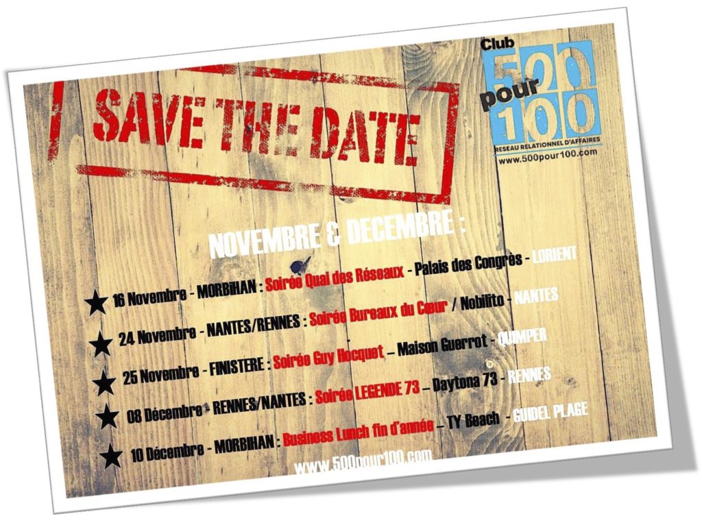A vos agendas, voici le programme de Novembre & Décembre des prochaines rencontres Multi-Zone du Club Réseau d’Affaires 500pour100.